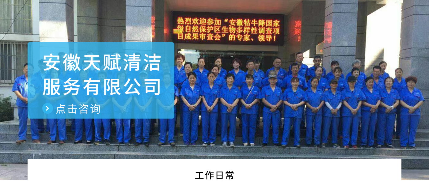 安徽天賦清潔服務(wù)有限公司是的服務(wù)型企業(yè),主要從事道路清潔、物業(yè)托管保潔、工程開(kāi)荒、高空作業(yè)、地毯清洗、石材翻新等多項(xiàng)服務(wù)為一體的環(huán)保型清潔公司。公司管理機(jī)制完善,清潔作業(yè)經(jīng)驗(yàn)豐富,擁有技術(shù)力量,嚴(yán)格實(shí)行崗前培訓(xùn)—崗中督查—上崗在培訓(xùn)的員工管理措施,憑著優(yōu)良的清潔質(zhì)量和嚴(yán)格的督查管理,為眾多企事業(yè)單位、醫(yī)院、酒店、廠區(qū)商場(chǎng)、物業(yè)、道路、學(xué)校、公園等提供后勤清潔服務(wù)。在業(yè)內(nèi)擁有良好的口碑。工作人員,服務(wù)態(tài)度優(yōu),竭力為客戶提供好的保潔服務(wù)。安徽天賦清潔服務(wù)有限公司:致力于長(zhǎng)期合作關(guān)系,提高服務(wù)質(zhì)量,提供高標(biāo)準(zhǔn)的清潔服務(wù)。公司的經(jīng)營(yíng)理念:為營(yíng)造一個(gè)更清潔、亮麗的生活和工作環(huán)境而努力!“誠(chéng)信”是公司成功保證。“客戶至上,信譽(yù)為首”是公司宗旨。高標(biāo)準(zhǔn)提供服務(wù),維護(hù)客戶利益、形象,是我始終不渝的目標(biāo)。